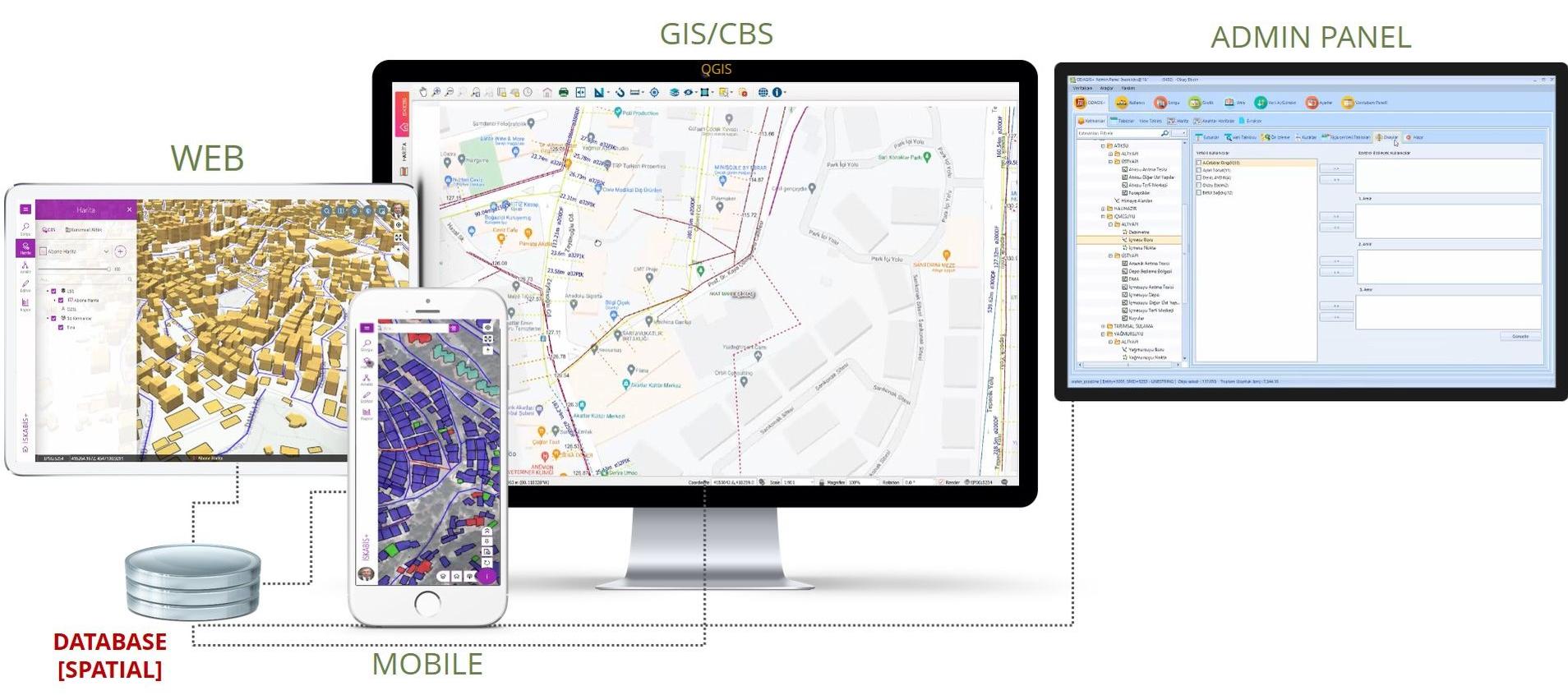 Yönetim arayüzü vasıtasıyla web/mobil yayınları yönetilebilmektedir. Ayrıca kurumun farklı veritabanlarına erişim ve entegrasyon işlemleri standart bir şekilde yapılabilmektedir. Veritabanları arasında periyodik veri güncelleme işlemlerini yöneten arayüzler sunulmaktadır.